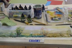 Many of the books were created by drawings and paintings from the Drawing Walk in the morning |