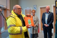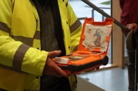 Picture 3 and 4. David Owen (defibrillator awareness group) demonstrating device