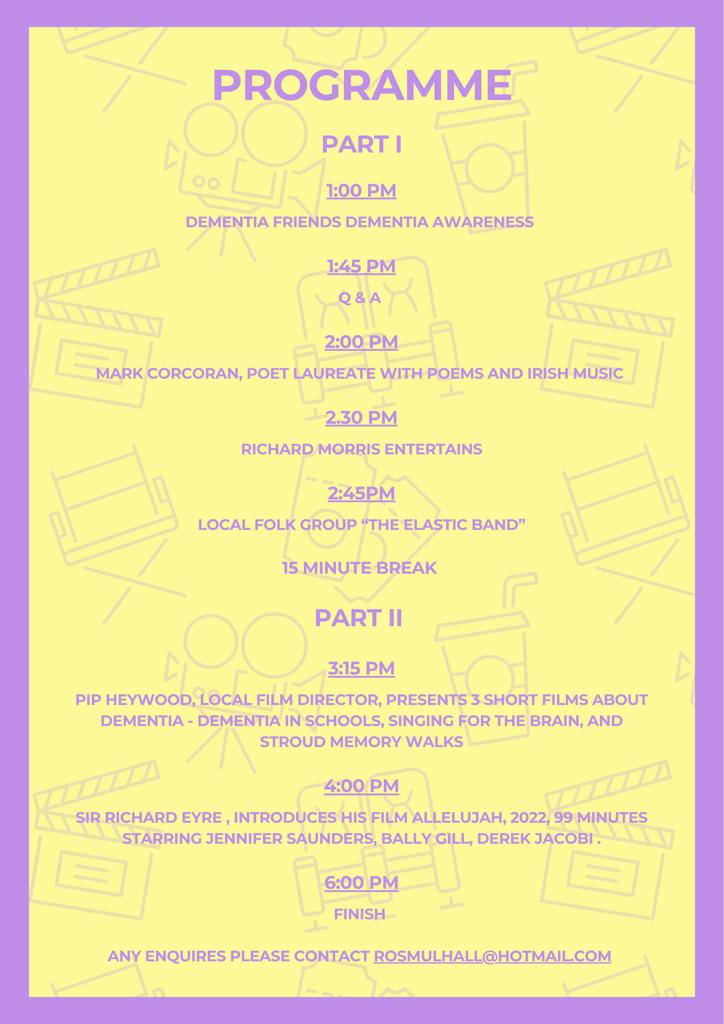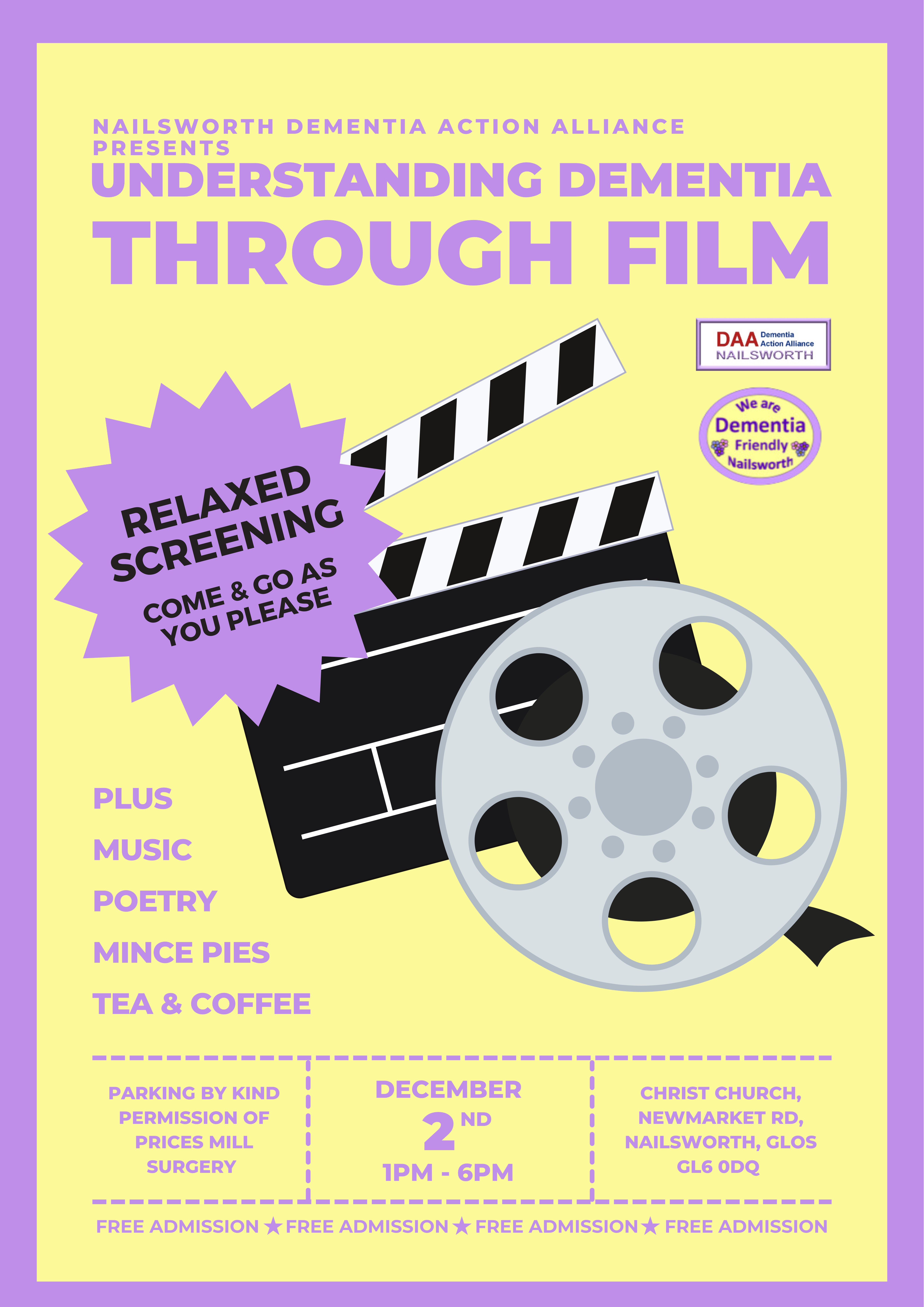 A free afternoon at Christ Church Nailsworth looking at dementia awareness with relaxed viewinf of some films. Click here for information about the films and here for the full programme (1 pm to 6 pm). Come for all or part of the day